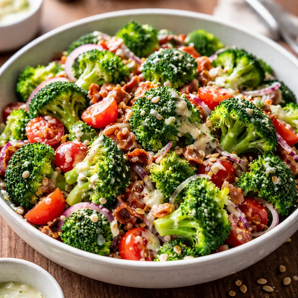 Fresh broccoli with a vibrant green color. Choose a firm head without discoloration; the florets should be compact, without wilted leaves. Broccoli is a source of vitamins C and K, as well as fiber.