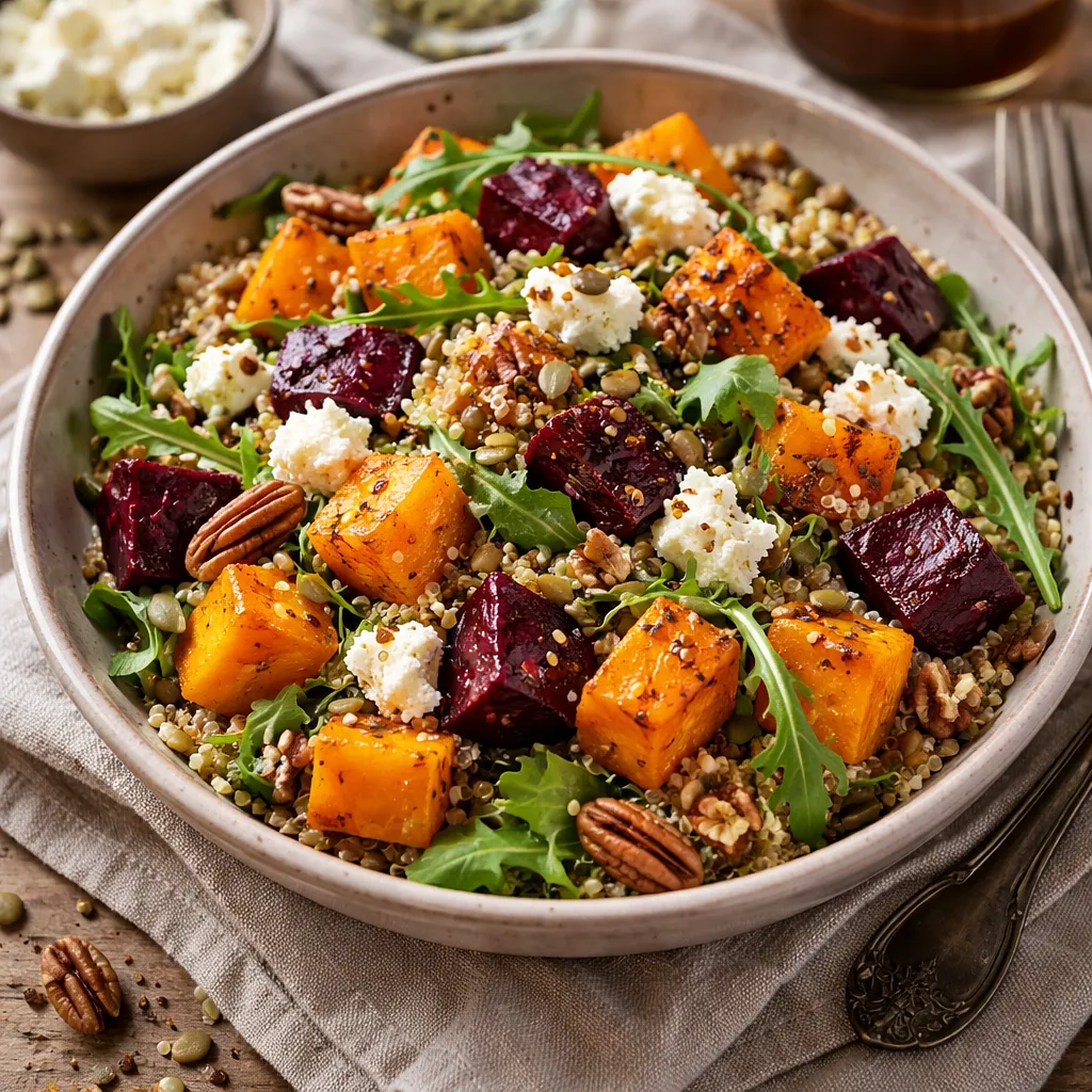 Creamy, slightly tangy cheese that beautifully contrasts with the sweetness of roasted vegetables. Choose fresh, soft goat cheese with a delicate texture.