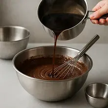 The last, magical step. Take freshly brewed, very hot coffee. Slowly, in a thin stream, pour it into the thick chocolate mixture while gently stirring with a whisk. At first, it may seem like something went wrong, but after a moment, the ingredients will come together. Stir until you achieve a smooth, uniform, and very runny batter. Its consistency should resemble a thin pudding or pancake batter.