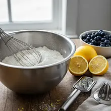 Here is a recipe for a cake that is the essence of summer captured in a perfect bake. Velvet Yogurt Cake with Blueberries and Lemon Crumble is a combination of extraordinary moisture and tenderness with a refreshing hint of fruit and a crunchy, buttery finish. Thanks to the addition of thick natural yogurt, the cake gains a unique, fluffy texture that simply melts in your mouth. Each bite is an explosion of flavor – sweet, juicy blueberries embedded in buttery cake perfectly contrast with the tart lemon crumble, which adds a refined character and pleasant texture to the whole. The cake is not only delicious but also looks beautiful – the golden crumble and purple accents of the blueberries create an appetizing mosaic. It is perfect as a dessert for a Sunday afternoon, a sweet treat at a gathering with friends, or simply as a moment of pleasure with a cup of aromatic coffee or tea.