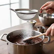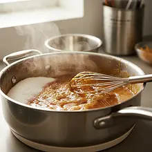 This is a crucial moment! If you add powdered milk to a mixture that is too hot, it can form difficult-to-mix lumps. If the mixture is too cold, the powdered milk will not dissolve. The ideal temperature is around 60-70°C.