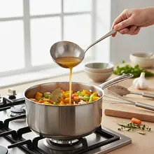 Zdejmij garnek z ognia. Teraz czas na blendowanie. Najwygodniej użyć blendera ręcznego (żyrafy) i zmiksować zupę bezpośrednio w garnku. Blenduj cierpliwie, poruszając blenderem w górę i w dół, aż uzyskasz idealnie gładką, aksamitną konsystencję bez żadnych grudek. Może to potrwać 2-3 minuty.
