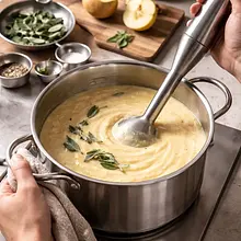 Remove the pot from the heat. Use an immersion blender and blend the soup directly in the pot until you achieve a perfectly smooth, velvety consistency. Blend patiently, making up-and-down motions to incorporate all the vegetable pieces. This may take 2-3 minutes.