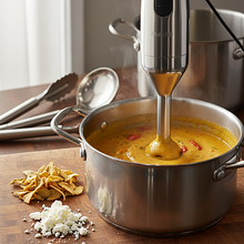 Zdejmij garnek z ognia. Za pomocą blendera ręcznego (żyrafy) zmiksuj zupę bezpośrednio w garnku na idealnie gładki, aksamitny krem. Miksuj cierpliwie przez 2-3 minuty, poruszając blenderem w górę i w dół, aby pozbyć się wszystkich grudek. Spróbuj zupy i dopraw do smaku solą i pieprzem, jeśli jest taka potrzeba. Jeśli używasz opcjonalnej śmietanki, dodaj ją teraz i wymieszaj.