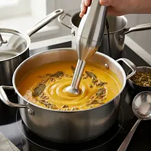 Remove the pot from the heat. Using an immersion blender, blend the soup directly in the pot until it is a perfectly smooth, velvety cream. Move the blender up and down and side to side to ensure there are no lumps. Blend patiently for 2-3 minutes. If you don't have an immersion blender, you can transfer the soup in batches to a countertop blender.