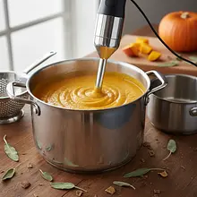 Zdejmij garnek z ognia. Używając blendera ręcznego (żyrafy), zblenduj zupę bezpośrednio w garnku na idealnie gładki, aksamitny krem. Blenduj przez kilka minut, poruszając blenderem w górę i w dół, aby pozbyć się wszystkich grudek. Jeśli nie masz blendera ręcznego, przelewaj zupę partiami do blendera kielichowego i blenduj do gładkości.
