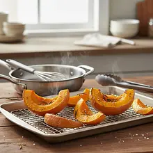 Line a baking sheet with parchment paper. Spread the seasoned pumpkin in a single layer. Place in the preheated oven and bake for 25-30 minutes. The pumpkin is ready when it becomes very soft (a fork should go into it with no resistance), and its edges start to lightly caramelize and brown. This stage is what gives the drink its deep flavor.