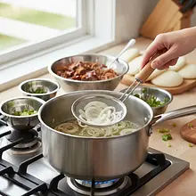 In a large pot, heat 15 ml of vegetable oil over medium-high heat. Cut the onion into feathers. Add the onion to the pot and sauté for 5-7 minutes until it becomes translucent and slightly soft. Then, sear the marinated meat on all sides until golden brown, which will take about 8-10 minutes. The goal is to seal the meat's pores and create a flavorful crust.