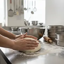 Transfer the dough to a lightly floured work surface and knead vigorously for about 10 minutes. The dough should become smooth, elastic, and stop sticking to your hands. Shape it into a ball, place it in a bowl greased with a little oil, cover with a clean cloth, and set it in a warm place for about 60-90 minutes, until it doubles in size.
