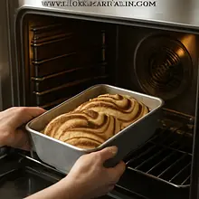 Place the pan in the preheated oven on the middle rack. Bake for 50–60 minutes at 170°C (check from the 45th minute). The cake is ready when a inserted stick or toothpick comes out clean or with a few dry crumbs, the top is golden, and the cake is springy to the touch. After baking, remove it and let it sit in the pan for 10 minutes, then transfer the cake to a wire rack to cool completely.