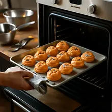 Bake the bączki in an oven preheated to 180°C for 25 minutes, until golden. After cooling, dust with powdered sugar.