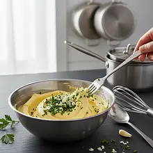 Wyjmij masło z lodówki na około 30 minut przed rozpoczęciem pracy, aby zmiękło i osiągnęło temperaturę pokojową. Powinno być na tyle miękkie, by dało się je łatwo rozsmarować i połączyć z innymi składnikami. W międzyczasie umyj dokładnie natkę pietruszki pod bieżącą wodą, osusz ją ręcznikiem papierowym i bardzo drobno posiekaj. Ząbki czosnku obierz z łupinek, a następnie przeciśnij przez praskę do czosnku lub zetrzyj na tarce o najmniejszych oczkach. Jeśli nie masz tych narzędzi, możesz posiekać czosnek bardzo, bardzo drobno ostrym nożem.
