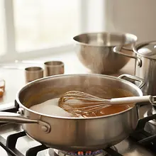 In a small saucepan with a thick bottom, place the white sugar. Heat over medium heat, without stirring, until the sugar starts to melt and takes on an amber color at the edges. Then you can gently swirl the saucepan to allow the sugar to melt evenly. When all the sugar has dissolved and has reached a light amber color, remove the saucepan from the heat. VERY CAREFULLY add 30g of butter (cut into cubes) and vigorously mix with a whisk - the mixture will bubble vigorously! Then, while continuously stirring, slowly pour in the heavy cream. Place back on low heat and cook for about a minute, until the sauce is smooth. Remove from heat, add a generous pinch of salt, and mix. Set aside to cool slightly.