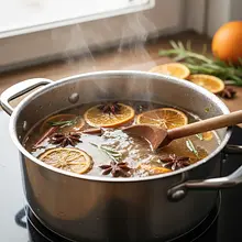 Heat the drink slowly, gently stirring with a wooden spoon from time to time. Watch the liquid – when small bubbles start to appear at the edges of the pot and steam rises from the surface, immediately reduce the heat to the minimum. The drink should be gently 'steeping', but not boiling. Cover the pot with a lid, leaving a small gap, and let it infuse with flavors for about 20-25 minutes.