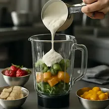 If you are not serving the entire smoothie right away, pour the excess into a sealed jar or bottle and place it in the refrigerator. The smoothie will maintain good quality for 12–24 hours — after this time, natural separation of the liquids is normal, so shake or briefly blend again before serving.