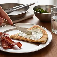 Chlebek pita jest jednym z najstarszych rodzajów pieczywa na świecie, jego historia sięga co najmniej 4000 lat i wywodzi się z Bliskiego Wschodu. Połączenie go z typowo europejskim boczkiem to pyszny przykład kulinarnego fusion.