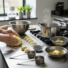 Once the ingredients are preliminarily combined, start quickly kneading the dough by hand. Make movements from the outside to the center until a smooth, uniform, and elastic ball of dough forms. It should slightly stick to your hands but come away from the work surface. The entire kneading process should not take longer than 2-3 minutes.