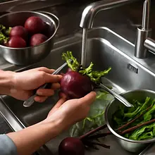 If you have raw beets: wash them thoroughly under running water, trim the leaves and root so as not to damage the skin. Place the beets in a large pot, ensuring they have space (do not layer them too tightly). Cover with cold water so that the water is about 2 cm above the surface of the beets. Add 5 g of salt. Bring to a boil over high heat, then reduce the heat to medium-low and cook for 40–60 minutes depending on size (smaller ones 30–40 min, larger ones even 60+). Check by piercing the largest beet with a fork or knife: if the knife goes in smoothly to the center, the beets are soft and ready.