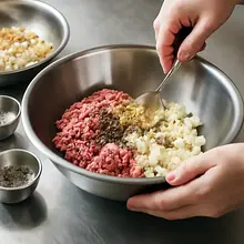 Lamb burgers with feta are an exquisite variation of classic burgers, inspired by Greek cuisine. Tender lamb meat combined with aromatic feta, onion, and garlic creates a juicy composition full of flavor. Served with fresh herbs and olive oil, they pair perfectly with crunchy lettuce or grilled vegetables. Ideal for a weekend lunch or barbecue.