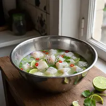 Kluczowa jest świeżość ryby! Jeśli masz wątpliwości, nie rób tego dania. Użyj deski przeznaczonej wyłącznie do ryb, aby uniknąć zanieczyszczenia krzyżowego. Nie używaj metalowej miski, ponieważ kwas z limonek może wejść w reakcję z metalem, nadając rybie nieprzyjemny posmak.