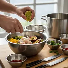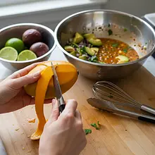 Prepare a spicy marinade. Cut the limes in half and squeeze the juice into a glass or ceramic bowl. Then cut the passion fruit in half and use a small spoon to scoop out all the pulp along with the seeds directly into the lime juice. Wash the chili pepper, cut off the stem, slice it in half lengthwise, and use the tip of a knife to remove the seeds and white membranes (that's where the most heat is). Then chop the chili pepper into very small pieces and add it to the bowl. Mix everything thoroughly with a fork.