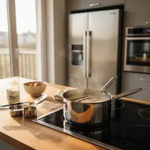 Start by preparing the starter. In a small saucepan, heat 200 ml of milk. It should be slightly warm, like bath water for a baby (about 37°C). Milk that is too hot will kill the yeast. Crumble 25g of fresh yeast into a large bowl or cup, add 1 tablespoon of sugar (about 15g) from the measured portion, and then pour in the warm milk. Gently mix everything with a fork until the yeast dissolves. Cover with a cloth and set aside in a warm, draft-free place for about 10-15 minutes. The starter is ready when a thick, high foam appears on its surface - this is a sign that the yeast is active and working.
