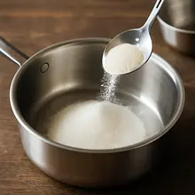 Prepare a hot agar-sugar syrup: in a small, wide saucepan, add 200 g of sugar and 4 g of agar-agar, and mix with a dry spoon (agar evenly distributed). Add 60 ml of water (about 60 g) and heat over medium heat, stirring until the sugar dissolves and the mixture begins to boil. Cook for 1–2 minutes from the moment it boils, stirring constantly — the agar must activate and dissolve. The syrup should be clear and slightly thicken after removing from heat.
