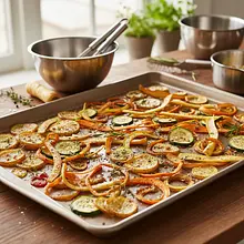 Spread the seasoned peels on the prepared baking sheet, creating one thin layer. This is very important - if the peels overlap, they won't crisp up. If you have a lot, it's better to bake them in two batches. Place the baking sheet in the preheated oven and bake for 10-15 minutes. After this time, remove the baking sheet, stir the chips with a spatula, and bake for another 5-10 minutes, until they become golden brown and crispy. Keep an eye on them towards the end of baking, as thin skins can burn quickly.