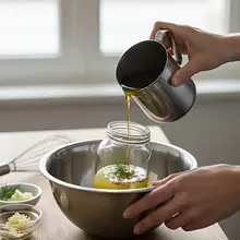 Mocno zakręć słoiczek i energicznie nim potrząsaj przez około 20-30 sekund. Kontynuuj, aż wszystkie składniki połączą się w gładki, jednolity i lekko zgęstniały sos o jednolitej barwie. Odstaw na bok.