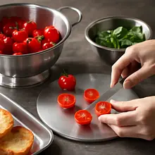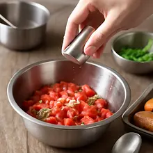 Season the filling: to the bowl with tomatoes, add finely chopped garlic (10 g = 2 cloves, chop very finely or press through a garlic press), chopped basil (10 g), 30 g of olive oil, 2 g of salt, and 1 g of freshly ground pepper. Gently mix with a wooden spoon for 20–30 seconds to combine the ingredients. Set aside for 5–10 minutes to let the flavors meld — the tomatoes will release some juice, and the oil will absorb the aromas.