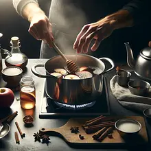 Reduce the heat to the lowest possible setting and simmer very gently (not a boiling bath) for 10-15 minutes to allow the spices to infuse. Halfway through, check the taste: if you want a sweeter cider, add a little more sugar (5-10 g) or honey (optional). After 10-15 minutes, the aroma of the spices should be pronounced, and the drink will have a darker, more saturated color.