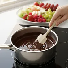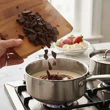 Carefully pour the hot chocolate mixture into a special fondue pot (called a caquelon). Under the pot, light a small tealight candle or a special gel burner to keep the chocolate in a liquid state throughout the gathering.