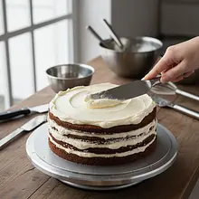 Spread the remaining cream on the top and sides of the cake, trying to smooth the surface. It doesn't have to be perfectly smooth, as the sides will be covered with crumbs. Place the assembled cake in the refrigerator for at least 8 hours, preferably overnight. This is an absolutely crucial step during which the firm layers will absorb moisture from the cream, become soft and 'cakey', and the flavors will meld together.
