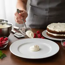 Prepare a platter or plate on which you will serve the cake. Place a small teaspoon of cream in the center so that the first layer doesn't move. Place the first layer of cake on top. Spread a thin layer of cream evenly on it (about 3-4 tablespoons). Cover with the second layer, press down lightly, and spread cream again. Repeat this process until you have used all 7 layers.