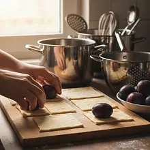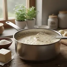 Start by preparing the yeast starter. In a small saucepan, heat 250 ml of milk. It should be lukewarm, at a temperature of about 37°C – when you put your finger in it, it should feel pleasantly warm but not hot. Crumble 25 g of fresh yeast into a large bowl, add one tablespoon of sugar, and pour the warm milk over it. Gently mix with a fork until the yeast dissolves. Cover the bowl with a clean cloth and set it in a warm, draft-free place for about 10-15 minutes. After this time, a thick, bubbly foam should appear on the surface, which is a sign that the yeast is active and ready to work.
