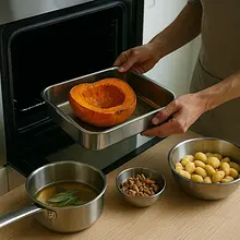Preheat the oven to 200°C (fan) or 220°C (top-bottom). Thoroughly wash the butternut squash. Carefully, using a large, sharp knife, cut the squash in half lengthwise. Use a spoon to remove the seeds and fibrous flesh from the center of both halves. Place the squash halves on a baking sheet lined with parchment paper, cut side up. Bake for about 40-50 minutes. The squash is ready when a fork easily pierces the flesh.