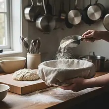 In a large bowl, place both types of flour: 400g of bread flour and 100g of whole grain rye flour. Pour in 350g of water (leave 25g for later). Using a spatula or your hands, mix the ingredients only until all the flour is moistened and there are no dry lumps. Do not knead the dough! Cover the bowl with plastic wrap or a damp cloth and let it rest for 60 minutes at room temperature. This process is called autolyse - it allows the flour to absorb water, which starts gluten development effortlessly and makes the dough more elastic.