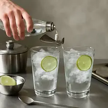 Start by chilling the glass. If you are using highball glasses or large gin glasses, place them in the refrigerator for 10–15 minutes or fill them briefly with ice and cold water for 5 minutes, then pour out the water. A chilled glass helps keep the drink cold for longer.