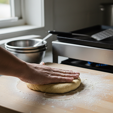 Take one ball of dough and place it on a lightly floured surface. Gently flatten it with your hand. Using a rolling pin, start rolling the dough from the center outwards, regularly turning the dough 45 degrees. Try to achieve the thinnest round shape possible, about 22-24 cm in diameter. The ideal tortilla should be almost transparent. Don't worry if the shape isn't perfectly round – that's the charm of homemade baking!