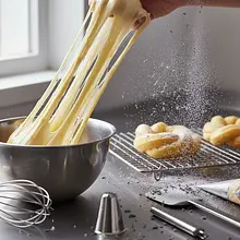 Now the most important and characteristic step in preparing angel wings: aerating the dough by beating. Knead the dough by hand only until the ingredients come together into a ball. Then take a heavy rolling pin and start vigorously hitting the dough, flattening it. Fold the flattened dough in half and hit it again with the rolling pin. Repeat this process (flattening and folding) for about 10-15 minutes. The dough will gradually become smooth, elastic, and uniform. Air bubbles should be visible in the cross-section.