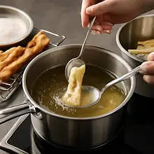 After frying, wait until the oil has completely cooled before straining or pouring it out. Dispose of it and set it aside for recycling according to local regulations, or pour it into a sealed jar for reuse only if the oil was used minimally and has not burned.