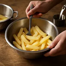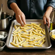 Potato fries are a classic snack, loved worldwide for their crispiness on the outside and softness on the inside. Easy to prepare and perfect as a side dish for many meals. Cut the potatoes into strips, coat them in olive oil, and bake until golden brown. A pinch of salt enhances their natural flavor. Perfect for any occasion, from family dinners to gatherings with friends.