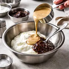 Tahini (sesame paste), Greek yogurt (10% fat), Tamarind pasta, Lime juice, Extra virgin olive oil, Salt, Chili flakes (optional)
