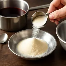 Use a small glass or plastic bowl. Do not use hot water – the gelatin must swell in cold water. A common mistake: adding hot water right away will ruin the structure of the gelatin.