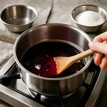 Heat over low to medium heat, stirring occasionally with a wooden spoon, until the sugar is completely dissolved (3–5 minutes). Once the sugar has dissolved, reduce the heat to low and maintain very gentle heating for another 3–5 minutes to allow the spices to release their aroma. Do not let it boil — gentle steaming is fine, but boiling will remove excessive alcohol and the refreshing notes of the wine.