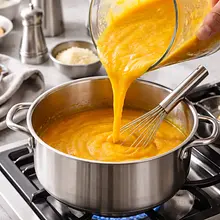 After cooking, remove the cinnamon sticks. Blend the contents of the pot with an immersion blender until smooth (about 1–2 minutes) or transfer to a stand blender and blend on high speed for 30–45 seconds. If you want a very smooth consistency, strain the puree through a fine sieve, using a spoon or a pestle to extract as much liquid as possible and remove the fibrous parts.