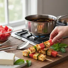 Przygotuj sos balsamiczny. Do małego rondelka wlej ocet balsamiczny i dodaj miód. Podgrzewaj na małym ogniu, mieszając drewnianą łyżką, aż miód całkowicie się rozpuści. Zwiększ ogień do średniego i doprowadź do delikatnego wrzenia. Gotuj przez 3-5 minut, od czasu do czasu mieszając, aż sos lekko zgęstnieje i zacznie pokrywać tył łyżki cienką warstwą. Zdejmij z ognia i odstaw do ostygnięcia. Pamiętaj, że sos zgęstnieje jeszcze bardziej, gdy ostygnie.