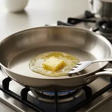 In a large skillet (about 28 cm in diameter) over medium heat, melt 30g of butter. Once the butter has melted and starts to foam slightly, add the chopped apples. Sauté for 2-3 minutes, stirring occasionally, until the apples are slightly translucent. Then sprinkle the apples with 45g of brown sugar, 1g (half a teaspoon) of cinnamon, and optionally a pinch of cardamom. Mix thoroughly.