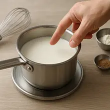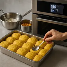 In a small saucepan, heat the milk. It should be slightly warm, at a temperature of about 37°C – when you put your finger in, it should feel pleasantly warm but not hot. In a small bowl, crumble the fresh yeast, add one tablespoon of sugar (from the 80g prepared for the dough) and pour in the warm milk. Mix thoroughly with a fork until the yeast is completely dissolved and a uniform liquid forms. Cover the bowl with a clean cloth and set it in a warm, draft-free place for about 10-15 minutes. The starter is ready when a thick, fluffy foam appears on its surface. This is a sign that the yeast is active and ready to work.