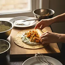 Here is a recipe for a dish that is the essence of autumn, wrapped up in a convenient form perfect for takeout. Juicy pieces of chicken, marinated in a sweet and spicy glaze of honey and Dijon mustard, pair perfectly with the velvety, slightly sweet roasted Hokkaido pumpkin. The whole dish is enveloped in a creamy sauce made from Greek yogurt and tahini paste, which adds nutty depth and freshness. Fresh spinach and slices of red onion provide a crunchy texture. This wrap is not just a meal, but a true feast for the senses – full of colors, textures, and flavors. It is hearty, balanced, and incredibly easy to pack, making it ideal as a work lunch, a nutritious snack at school, or a meal for a picnic on a cooler day. This is a modern and healthy take on seasonal cooking that is sure to delight everyone.